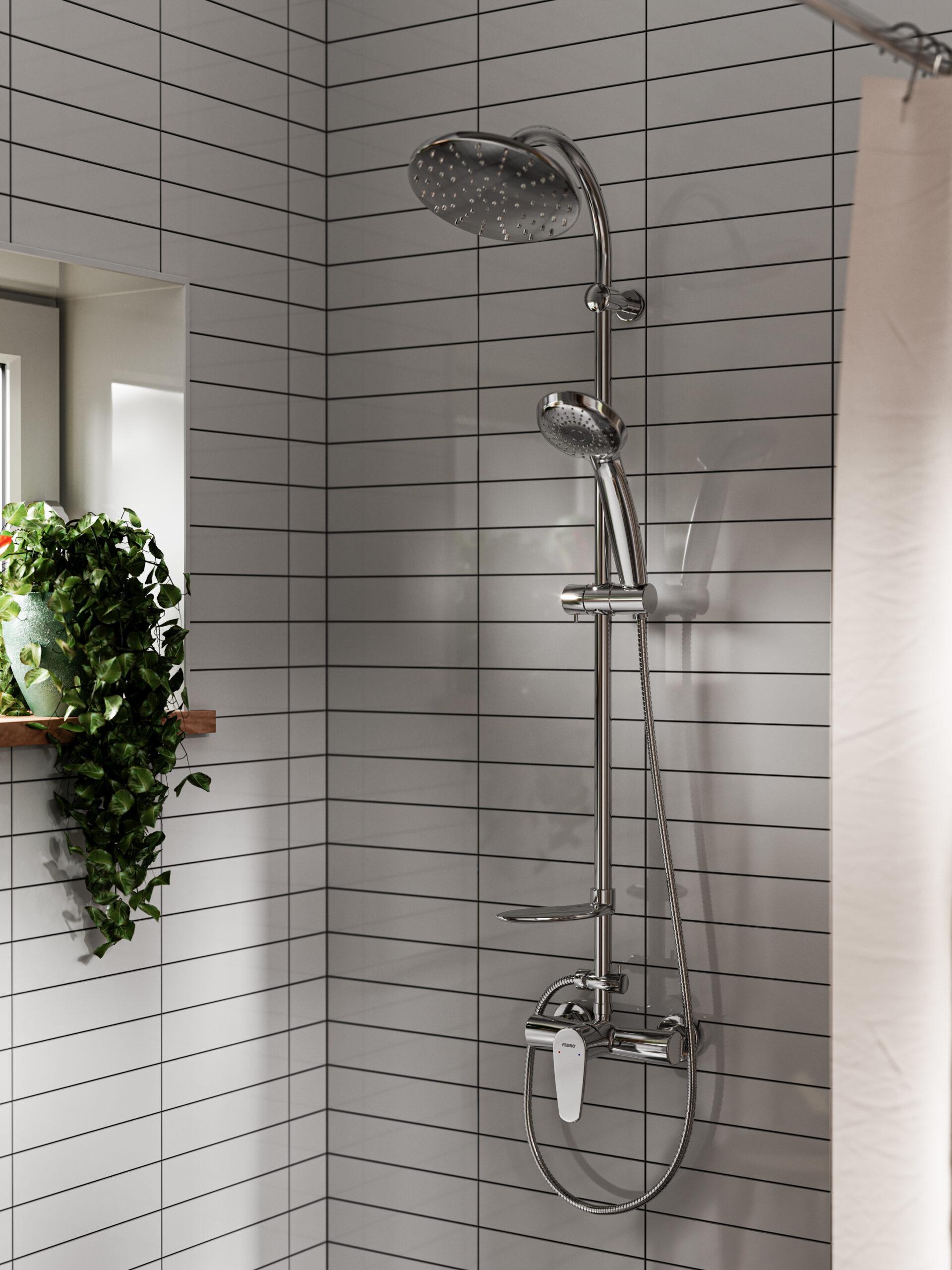 Tuš set ALGEO je vaša popolna izbira, saj vključuje 3-funkcijsko ročko za prho in nadglavno prho, ki posnema občutek nežnega dežja. Zahvaljujoč inovativnemu Easy Clean Systemu se vsako odstranjevanje vodnega kamna spremeni v hitro in preprosto opravilo, ki ohranja vaš tuš sijoč in brezhiben. Poleg tega je tuš set ALGEO premišljeno oblikovan tudi z dodatno poličko za milo, ki zagotavlja praktičnost in organiziranost v vaši kopalnici.
