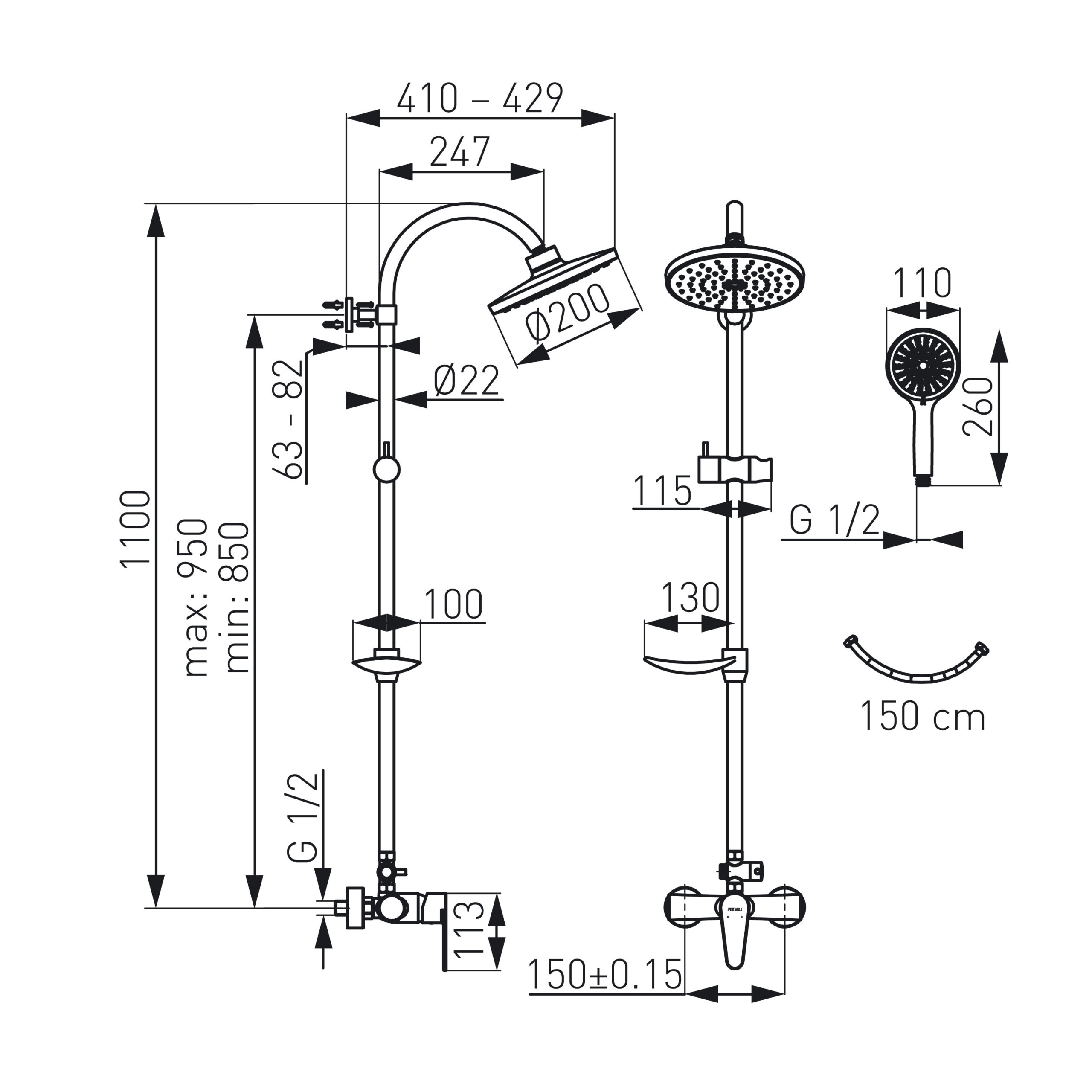 - G1/2 tuš priključek – zgornja armatura
