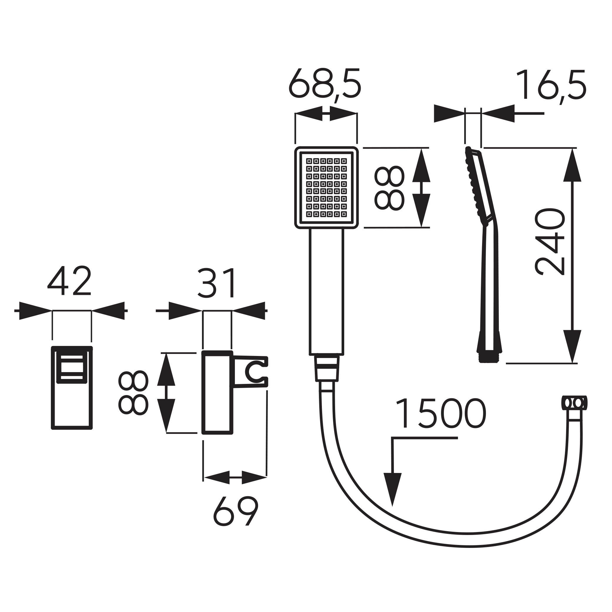 Tuš ročka SINUS v mat črni barvi je kvadratne oblike in je opremljena z inovativnim Easy Clean Systemom, kar omogoča enostavno odstranjevanje vodnega kamna. Njena elegantna črna mat barva bo zagotovo dodala pridih stila vaši kopalnici, ustvarjajoč moderno in privlačno vzdušje.