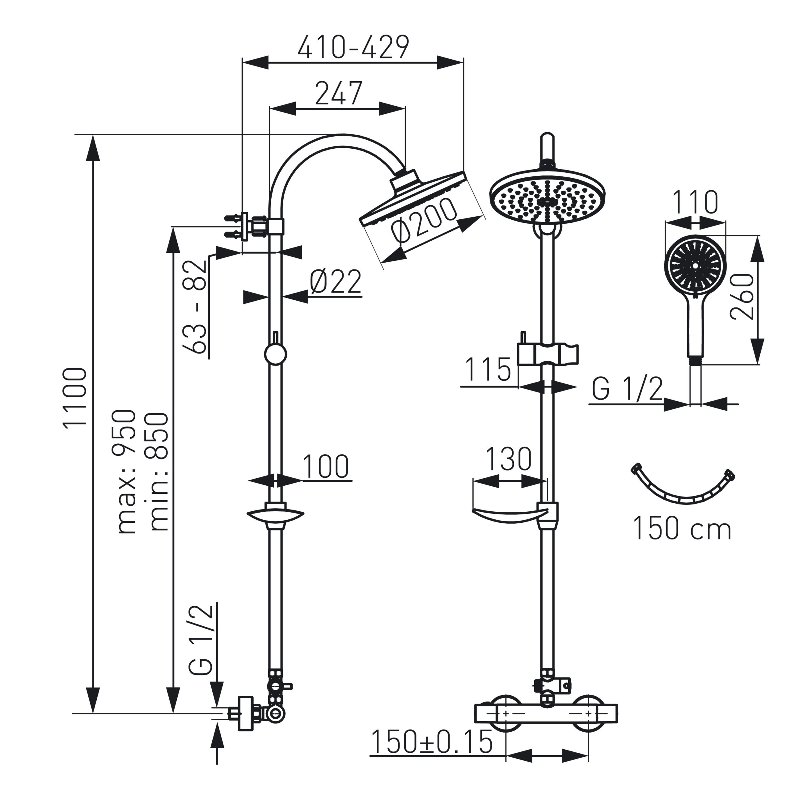 • G1/2 ekscentrični priključek 150 ± 20 mm razmaka