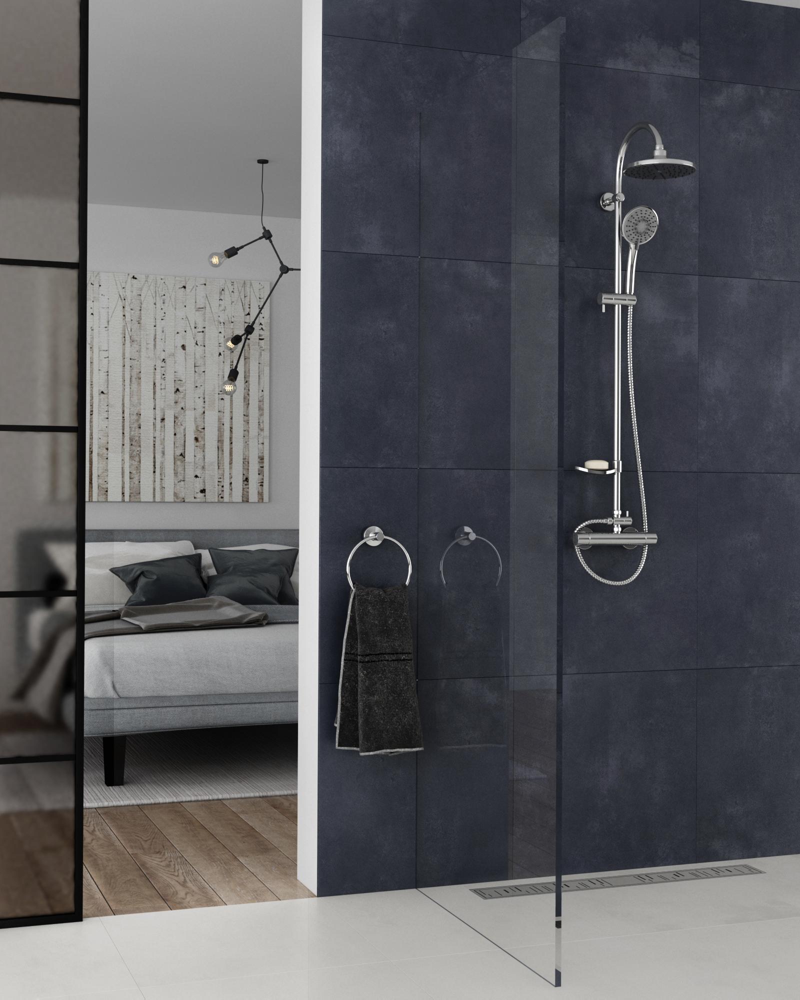 Tuš set TRINITY je vaša popolna izbira, saj vključuje 3-funkcijsko ročko za prho in nadglavno prho, ki posnema občutek nežnega dežja. Zahvaljujoč inovativnemu Easy Clean Systemu se vsako odstranjevanje vodnega kamna spremeni v hitro in preprosto opravilo, ki ohranja vaš tuš sijoč in brezhiben. Poleg tega je tuš set TRINITY premišljeno oblikovan tudi z dodatno poličko za milo, ki zagotavlja praktičnost in organiziranost v vaši kopalnici.