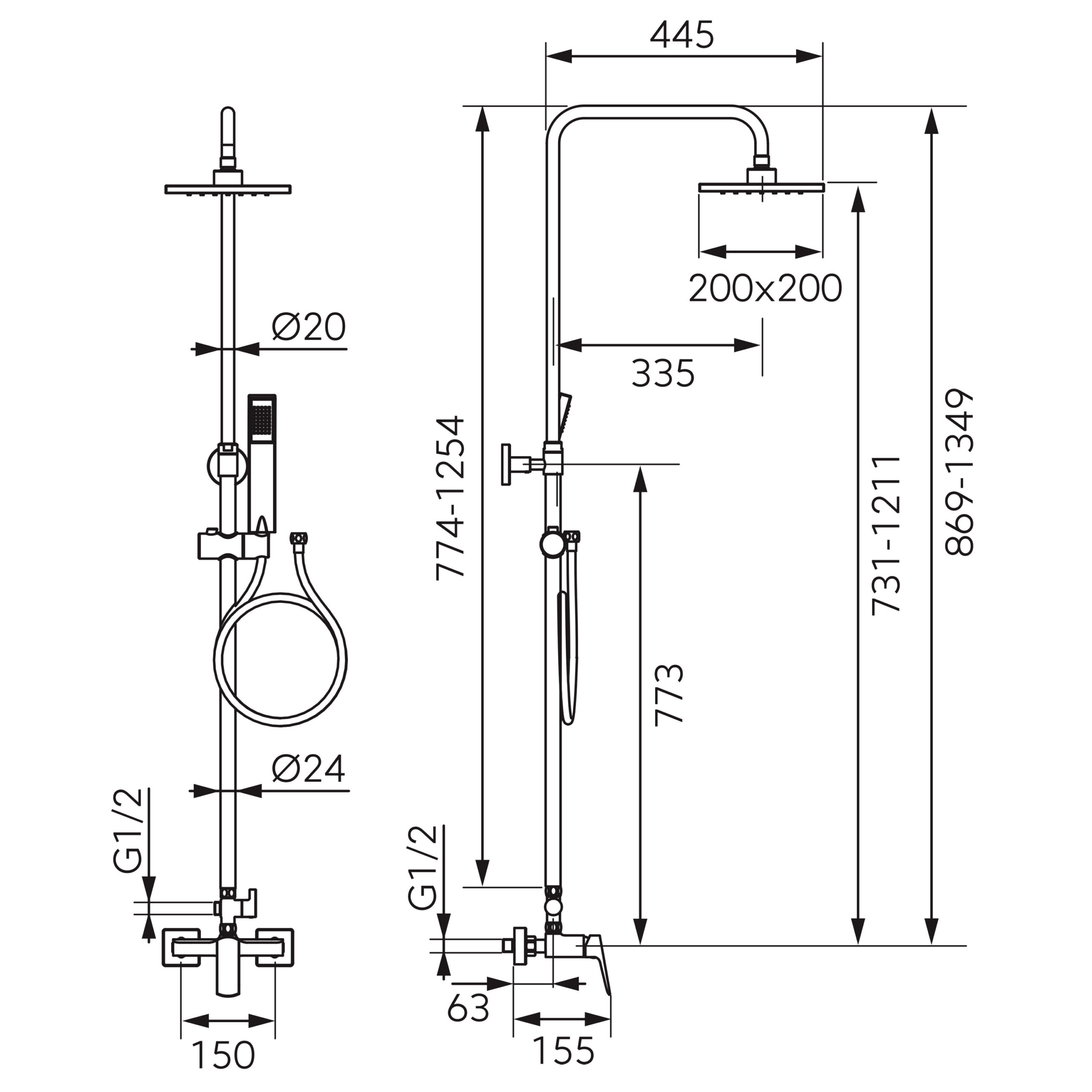 - Regulirana dolžina kovinske palice: 774 – 1254 mm